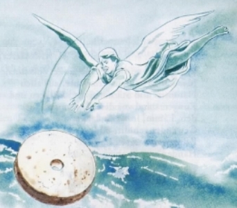 有一位大力的天使舉起一塊石頭,像大磨石一樣,扔進海裡,說:「這樣,大城巴比倫就猛力摔倒,再也找不到