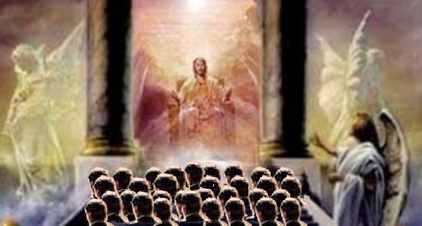 一個巨大的白色寶座出現了。死者們站在寶座之前。