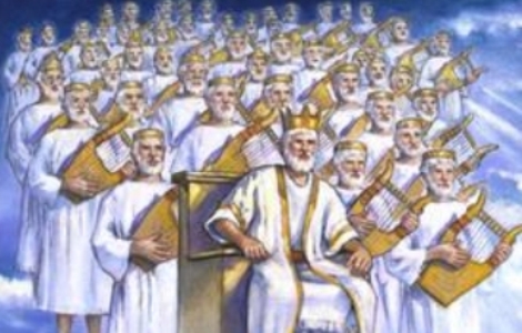 如同第 11 章所述,二十四位長老俯伏在地,高呼哈利路亞。